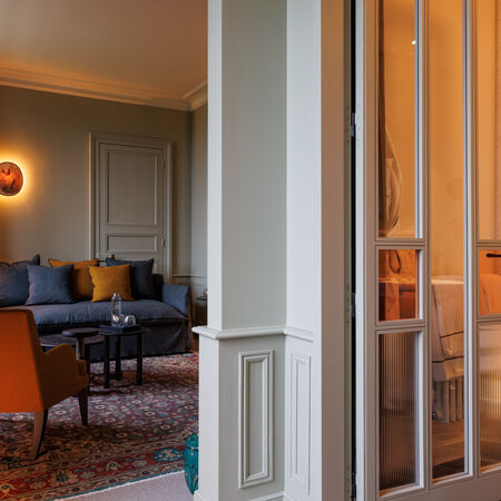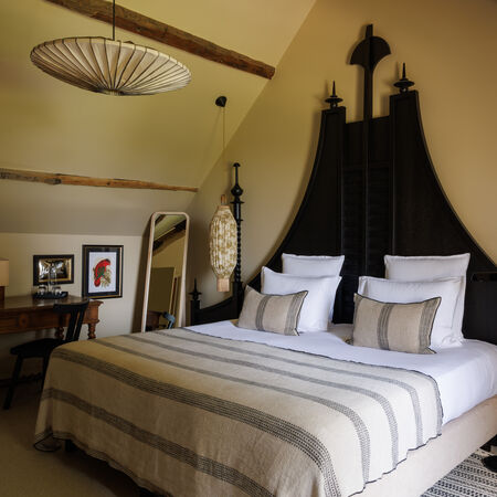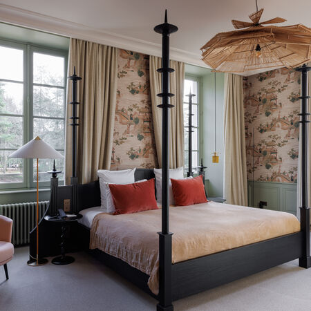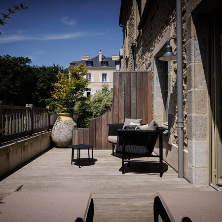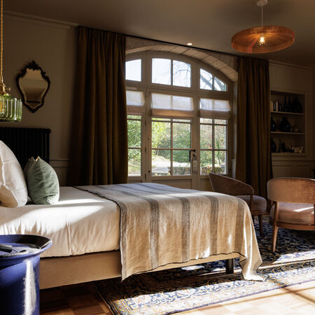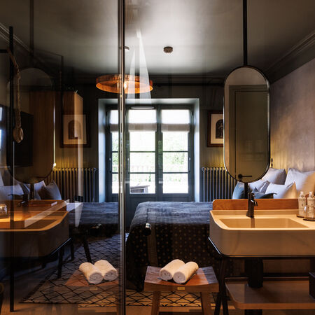 Located in the 18th-century freestone manor, these rooms showcase a refined travel theme with raw materials including stone and metal. The contemporary aesthetic combines minimalist design with warm touches, featuring views of either the sea or the estate's magnificent gardens. Two rooms are specially adapted for guests with reduced mobility.