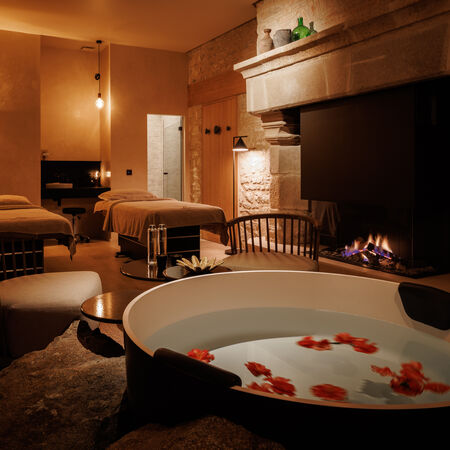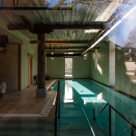 Former stables transformed into serene sanctuary with heated 17-meter pool, hammam, sauna, herbal tea room, and six treatment rooms including duo spa suite.