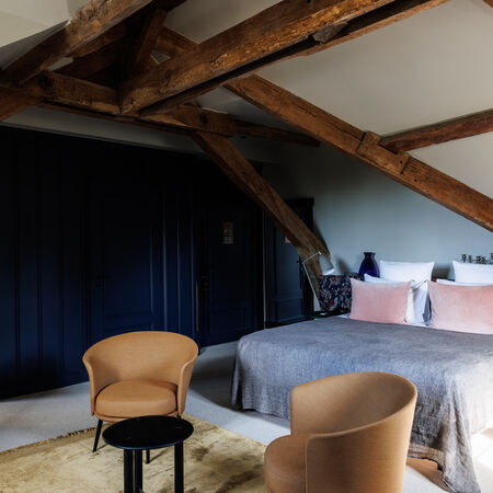 Set in the former 19th-century stables, these rooms celebrate equestrian heritage with industrial-style wrought-iron details and leather accents. Located on the first floor and accessed via staircase, all Club rooms provide direct access to the Spa Macha, making them ideal for wellness-focused stays.