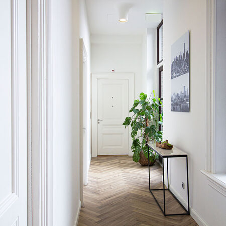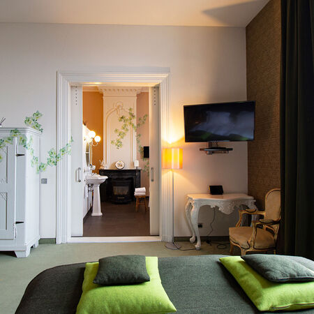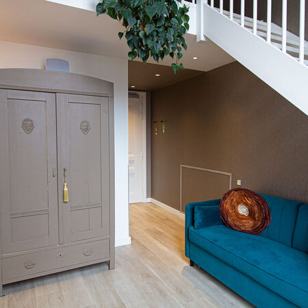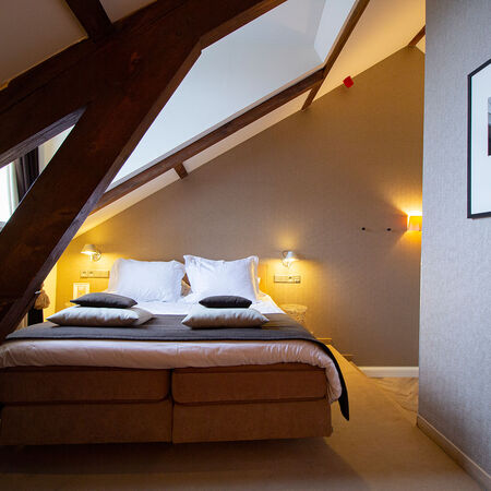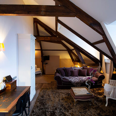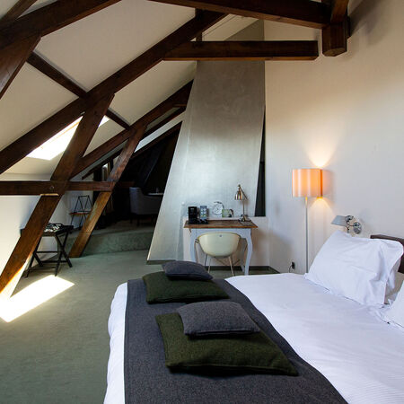 Most have tall panoramic windows bathing the space with light and those on the top floor feature beautiful historic wooden beams. There are a few rooms arranged on two floors and a rooftop apartment that is perfect for longer stays. Guests can also choose from a number of elegant Suites, all with original period details. We have a Romantic Suite with a fireplace and a freestanding English tub, a Corner Suite with a whirlpool and one of the best views of the whole hotel, and an Art Suite designed by artists with reclaimed materials and featuring a steam cabin, massage shower and bath.