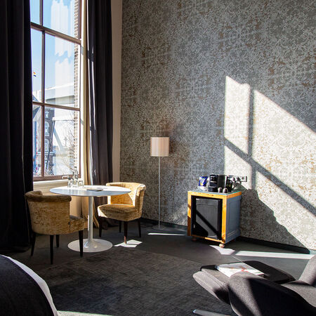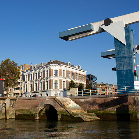 Few old buildings remain in Rotterdam's center, since the city was almost completely destroyed during WWII. One of them is the old customs house on the Maas river, next to the Rotterdam Marina, which now houses the hotel and was declared a national heritage monument.
