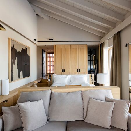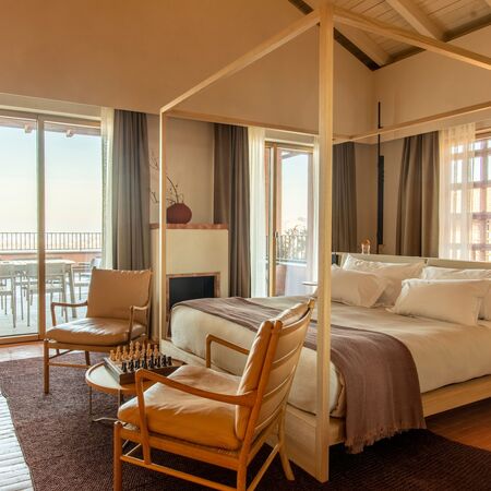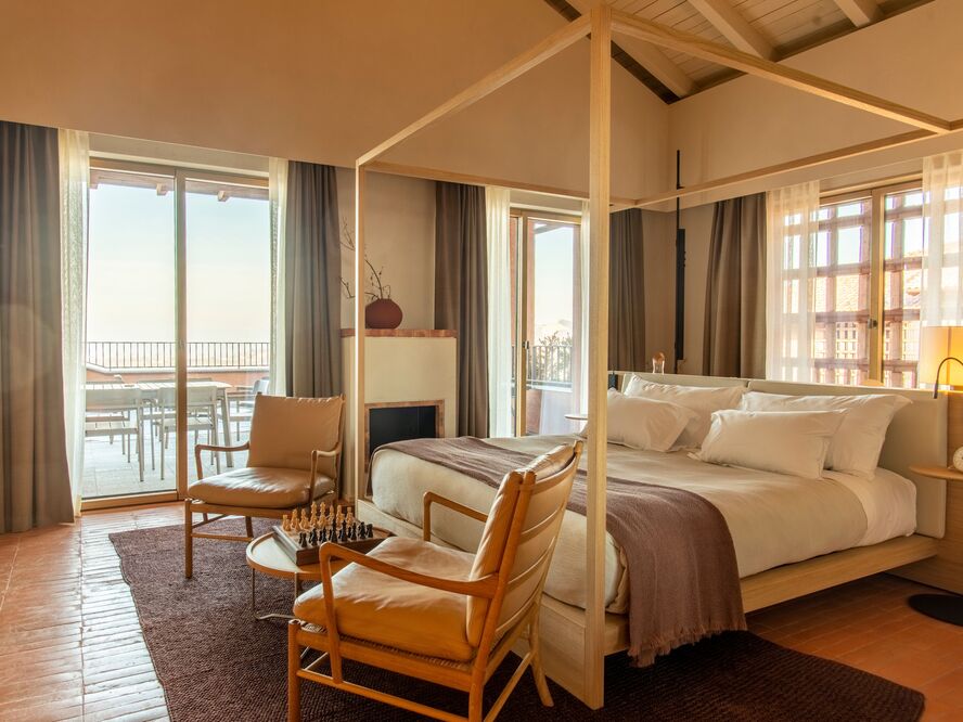 Junior Suite (40-45 sqm) Spacious accommodations with separate living areas, perfect for extended stays, featuring canopy beds and expanded terraces for al fresco dining.