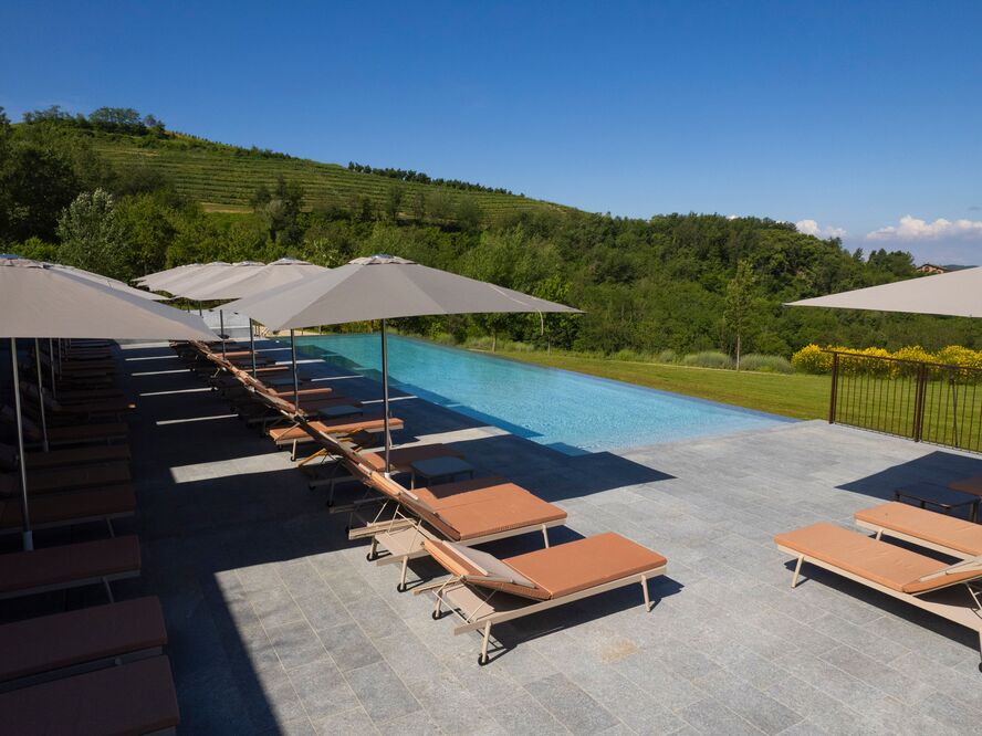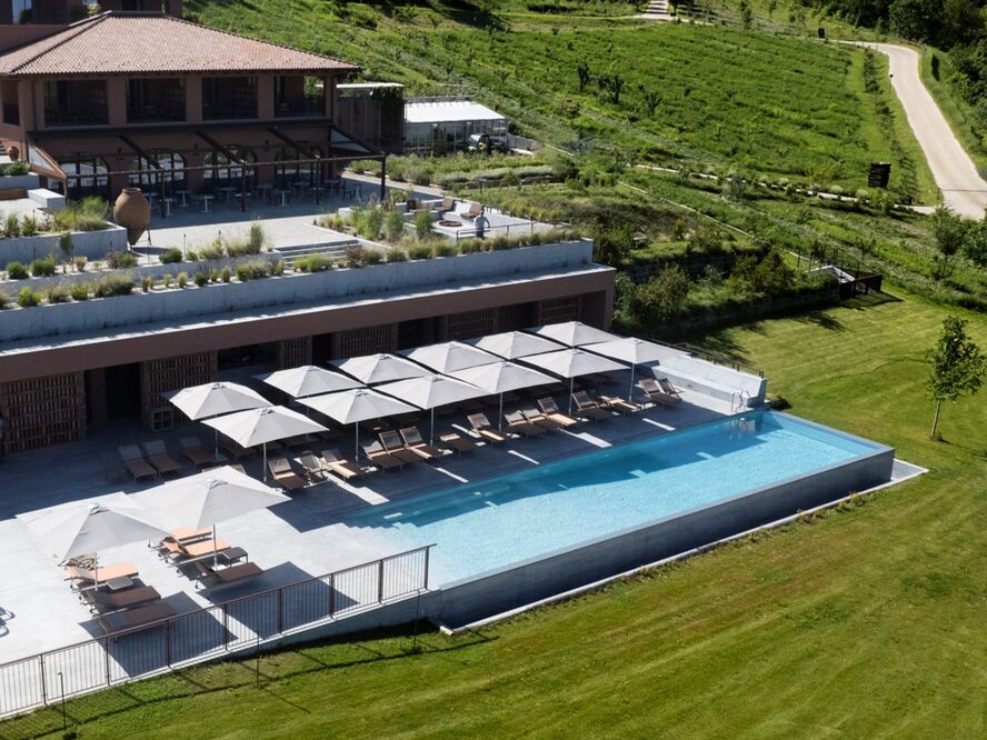 Lelòse Spa provides organic treatments inspired by nature, the infinity pool offers panoramic vineyard views, yoga and Pilates sessions are available, and the 42-hectare estate provides numerous walking paths and meditation spaces.